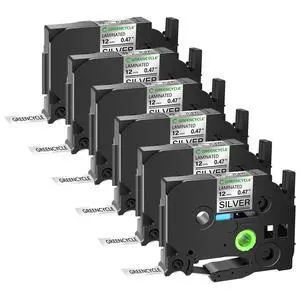 GREENCYCLE TZe-931 12mm 0.47 Laminated Silver Tape Compatible for Brother P-Touch Black on Silver TZ-931 TZe931 1/2 inch TZe TZ Tape for Ptouch PT-D210 D220 H110 H100, 6 Pack