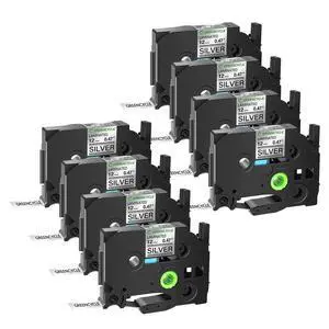 GREENCYCLE TZe-931 12mm 0.47 Laminated Silver Tape Compatible for Brother P-Touch Black on Silver TZ-931 TZe931 1/2 inch TZe TZ Tape for Ptouch PT-D210 D220 H110 H100, 8 Pack
