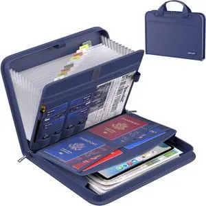 Accordion File Organizer,Fireproof Expanding File Folder with Multi Pockets,13 Pockets Document Organizer with Handle & Labels,Portable Home Travel Safe Storage Folder for Letter A4 Files,Blue