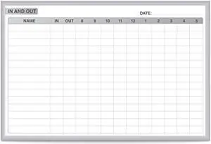 Ghent GRPM301E-23 In/Out Magnetic Whiteboard - Personnel In/Out Tracking Chart - 36" x 24" - White/Gray Surface, Satin Aluminum Frame