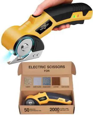 Cordless Electric Scissors, 4V Cardboard Cutter, Box Cutter Fabric Scissor with Safety Lock & LED Light, Rechargeable Power Rotary Cutters for Box Carpet Fabric Plastic Leather