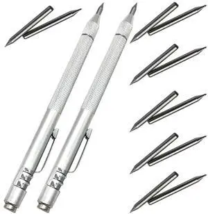 2 Pack Tungsten Carbide Scriber with Magnet,with Extra 12 Replacement Marking Tip,Etching Engraving Pen for Glass/Ceramics/Metal Sheet