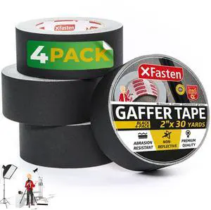 Black Gaffers Tape - 2 Inch x 30 Yards (4-Pack, 360ft) Residue-Free Matte Black Gaffer Tape for Electrical Cords