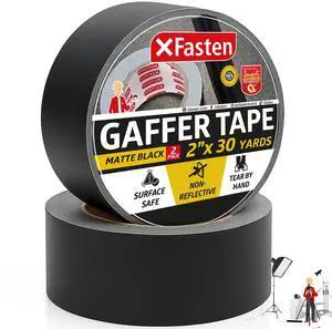 Black Gaffers Tape 2 Inch x 30 Yards, Residue-Free Strong Adhesion (2-Pack 180-feet Total) Matte Black Non-Reflective Tape for Electrical Cords, Photography, Gym Floor Stage Marking