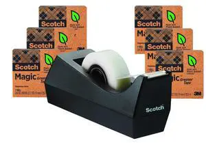 Magic Greener Tape with Dispenser, 3/4 in x 900 Inches, 6 Boxes of Tape and 1 Desktop Dispenser