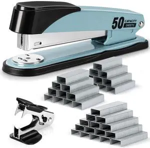 Stapler Heavy Duty, Full Strip Staplers for Desk with 2000 Staples and Staple Remover, 50 Sheet Capacity, No Jam, Non-Slip Office Stapler with Staples for Office, Classroom, Blue