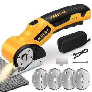 Cordless Electric Scissors, 4V Cardboard Cutter with 4 Blades, Rechargeable Box Cutter up to 1/3", with Storage Bag, Safety Lock & LED Light, Electric Scissors for Cardboard, Fabric & CarpetBrand: GenericFeatures: Orange (Includes 3 Spare Blades), Battery Powered, trueColor: BlueSpecifications: 0.88 pounds, Orange (Includes 3 Spare Blades), 0.2 pounds, lithium_ion, 1, BUBRAModel #: 799371847660