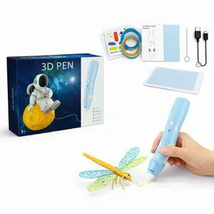 Kids 3D Pen Beginner Kit, Wireless Low Temperature 3D Printing Pen with PCL Plastic Filament and Drawing Templates, Easy to Use STEM Craft Toy for Ages 6-12 (Pastel Pink/Light Blue)