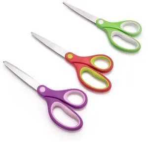 Multipurpose Stainless Steel Scissors for Office, Crafts, Right/Left Handed, Comfort Grip, PVD Coated, 3-Pack, Multicolor