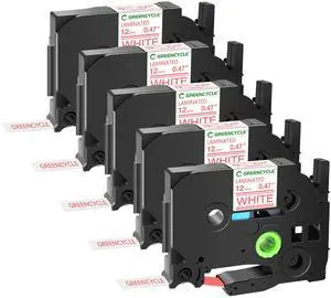 GREENCYCLE TZe-232 12mm 0.47 Laminated White Tape Compatible for Brother P-Touch Red on White TZ-232 TZe232 1/2 inch TZe TZ Tape for Ptouch PT-D210 D220 H110 H100, 5 Pack