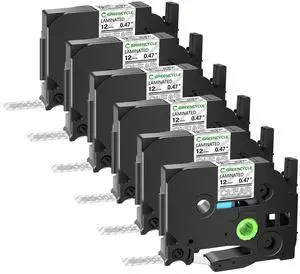 GREENCYCLE TZe-135 12mm 0.47 Laminated Clear Tape Compatible for Brother P-Touch White on Clear TZ-135 TZe135 1/2 inch TZe TZ Tape for Ptouch PT-D210 D220 H110 H100, 6 Pack