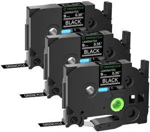 GREENCYCLE TZe-325 9mm 0.35 Laminated Black Tape Compatible for Brother P-Touch White on Black TZ-325 TZe325 3/8 inch TZe TZ Tape for Ptouch PT-D210 D220 H110 H100, 3 Pack
