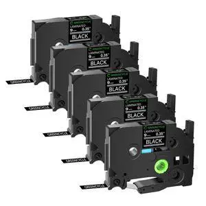 GREENCYCLE TZe-325 9mm 0.35 Laminated Black Tape Compatible for Brother P-Touch White on Black TZ-325 TZe325 3/8 inch TZe TZ Tape for Ptouch PT-D210 D220 H110 H100, 5 Pack
