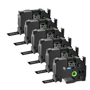 GREENCYCLE TZe-345 18mm 0.7 Laminated Black Tape Compatible for Brother P-Touch White on Black TZ-345 TZe345 3/4 inch TZe TZ Tape for Ptouch PTD410 PTD400 PTD610BT PTD600, 6 Pack
