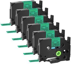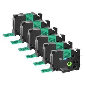 GREENCYCLE TZe-741 18mm 0.7 Laminated Green Tape Compatible for Brother P-Touch Black on Green TZ-741 TZe741 3/4 inch TZe TZ Tape for Ptouch PTD410 PTD400 PTD610BT PTD600, 6 Pack