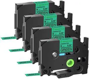 GREENCYCLE TZe-721 9mm 0.35 Laminated Green Tape Compatible for Brother P-Touch Black on Green TZ-721 TZe721 3/8 inch TZe TZ Tape for Ptouch PT-D210 D220 H110 H100, 4 Pack