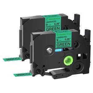 GREENCYCLE TZe-721 9mm 0.35 Laminated Green Tape Compatible for Brother P-Touch Black on Green TZ-721 TZe721 3/8 inch TZe TZ Tape for Ptouch PT-D210 D220 H110 H100, 2 Pack