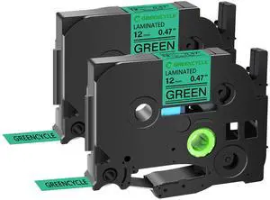 GREENCYCLE TZe-741 18mm 0.7 Laminated Green Tape Compatible for Brother P-Touch Black on Green TZ-741 TZe741 3/4 inch TZe TZ Tape for Ptouch PTD410 PTD400 PTD610BT PTD600, 2 Pack