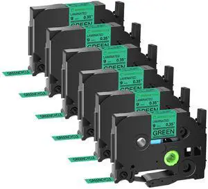 GREENCYCLE TZe-721 9mm 0.35 Laminated Green Tape Compatible for Brother P-Touch Black on Green TZ-721 TZe721 3/8 inch TZe TZ Tape for Ptouch PT-D210 D220 H110 H100, 6 Pack