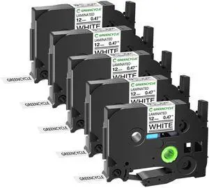 GREENCYCLE TZe-231 12mm 0.47 Laminated White Tape Compatible for Brother P-Touch Black on White TZ-231 TZe231 1/2 inch TZe TZ Tape for Ptouch PT-D210 D220 H110 H100, 5 pack