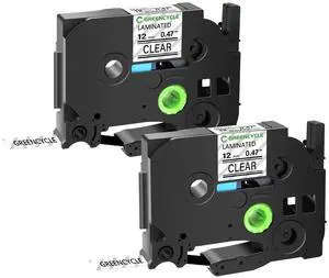 GREENCYCLE TZe-131 12mm 0.47 Laminated Clear Tape Compatible for Brother P-Touch Black on Clear TZ-131 TZe131 1/2 inch TZe TZ Tape for Ptouch PT-D210 D220 H110 H100, 2 Pack