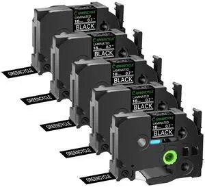 GREENCYCLE TZe-345 18mm 0.7 Laminated Black Tape Compatible for Brother P-Touch White on Black TZ-345 TZe345 3/4 inch TZe TZ Tape for Ptouch PTD410 PTD400 PTD610BT PTD600, 5 Pack