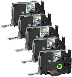 GREENCYCLE TZe-941 18mm 0.7 Laminated Silver Tape Compatible for Brother P-Touch Black on Silver TZ-941 TZe941 3/4 inch TZe TZ Tape for Ptouch PTD410 PTD400 PTD610BT PTD600, 5 Pack