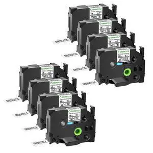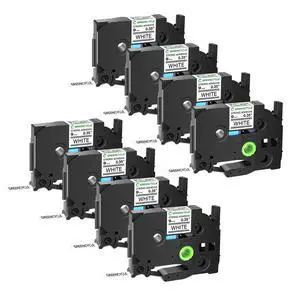 Brother 18mm (0.7") Black on White HGe Tape with Standard Adhesive, 8m - 5 Pack