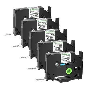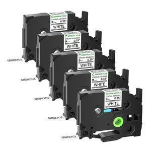 GREENCYCLE Extra Strength TZe-S221 9mm 0.35 Laminated White Tape Compatible for Brother P-Touch Black on White TZ-S221 TZeS221 3/8 inch TZe TZ Tape for Ptouch PT-D210 D220 H110 H100, 5 Pack