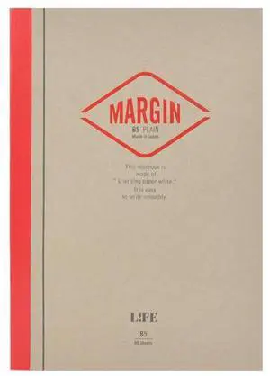 Life Margin Plain Notebook [Bound On Side]: 7 in. x 10 in. (Tan/Red Cover, Blank Pages) *B5 notebook