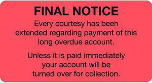 Billing Collection Labels, Fl Red - FINAL NOTICE, 3-1/4" X 1-3/4" (Roll of 250)