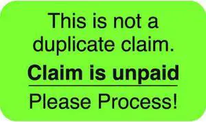 Insurance Labels, Claim is unpaid - Please Process! , Fluorescent Green, 1-1/2" x 7/8" (Roll of 250)