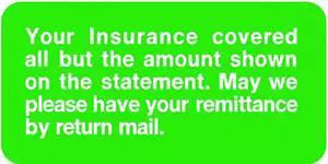 Insurance Labels, Your insurance covered all but the amount shown on the statement. - Green 2" X 1" (Pack of 252)