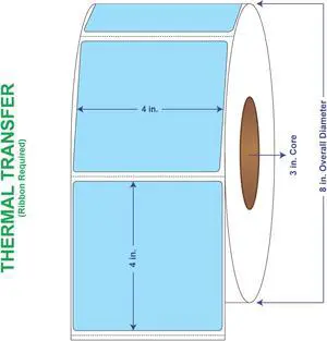 4" x 4" General Use Labels, w/ Perf Thermal Transfer Labels, Perforated, Tinted, Blue (2975), 1500 per roll (4 Rolls per Carton)