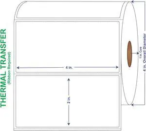 4" x 2" General Use Labels, w/ Perf Thermal Transfer Labels, Perforated, 730 per roll (4 Rolls per Carton)