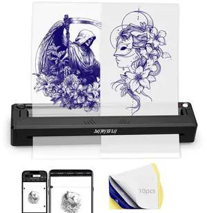New Tattoo Stencil Printer - Fits A4-A8 Width Thermal Paper, Portable Wireless Bluetooth Thermal Tattoo Kit, Includes 10 Transfer Papers, for Artists & Beginners, Phones/Tablets/PC - Black