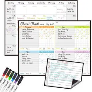 Magnetic Dry Erase Chore Chart and Calendar Bundle for Fridge - Chore Chart for Multiple Kids,Monthly Calendar,One Bonus to-do Whiteboard and 6 Extra Fine Tips Markers Included!