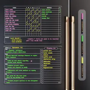 Acrylic Magnetic Chore Chart for Kids - 2 Pack 12"x9.5" Weekly Dry Erase Chore Board for Fridge with 8 Markers and 1 Towel for Multiple Kids, Teens and Family
