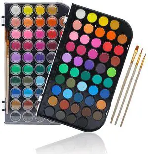 48 Colors Watercolor Cake Set with 3 Brushes, Washable, Travel Design, Perfect for Card Making, Illustrations, Painting, Calligraphy