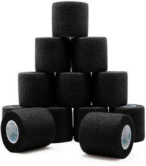 12 Rolls Self Adhesive Bandage Wrap, Elastic Athletic Tape, Self Stick Bandage Tape, Vet Wrap, Medical Wrap for Wrist, Feet, 2" x 5 Yards - Black