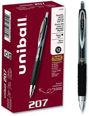uni-ball 207 Needle Point Retractable Gel Pen 0.7mm Blue Ink Black Barrel Stand 1736098