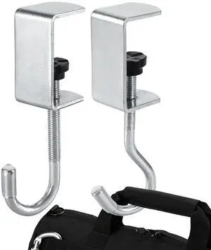 2 Pieces Desk Mount Bag Holder Hook Clamp Stand up Desk Store Clamp-On Under Desks Headphone Hanger Backpack Handbag and Purse Holder Cable Clip Organizer for Table Desks Under Counter