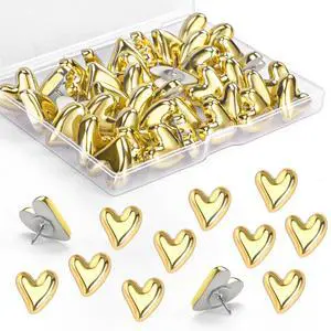 36 Pieces Cute Heart Push Pins, Gold Thumb Tacks, Decorative Gold Push Pins for Bulletin Board, Cork Board, Wall, Office or Home