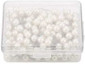 200PCS Pearl Push Pins, Decorative Thumb Tacks Round Short Pearl Head Pins Drawing Ball Map Pins Tack Push Sewing Box for Straight Pins for Crafting DIY Wedding (Pearl Pins for Flower White)