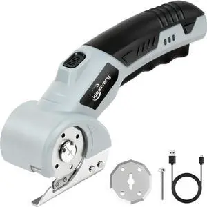 Cordless Electric Cutter, 4V Rechargeable Scissors Box Cutter with 2 Rotary Blades, USB Cable,Storage Bag, Safety Lock & LED Light, For Cardboard, Fabric, Plastic, Leather, Carpet, Packaging, DIY- Type: Scissors