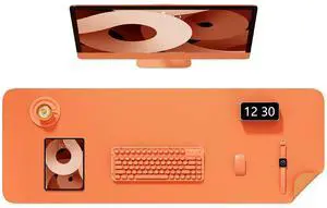 Niniubye Desk Pad, 48" x 17" PU Leather Non-Slip Desk Mat Large Mouse Pad for Desktop, Waterproof Laptop Computer Writing Mat for Office, Home, Work, Gaming, Orange