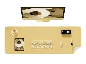 Niniubye Desk Pad, 48" x 17" PU Leather Non-Slip Desk Mat Large Mouse Pad for Desktop, Waterproof Laptop Computer Writing Mat for Office, Home, Work, Gaming, Pale Yellow