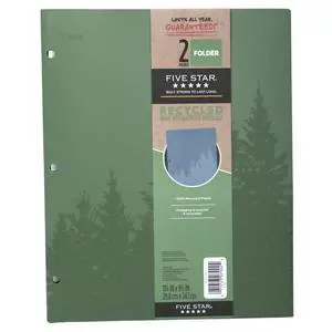 Five Star Recycled 2-Pocket Plastic Folder: 9 in. x 11 in. (Olympic Green) *1 folder