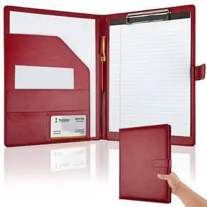 Professional Padfolio with Clipboard, Faux Leather Portfolio Folder Binder, Legal Pad Holder for A4 Letter Size Notepad, Resume, Writing, Ideal Organizer for Business Office Conference (Red)
