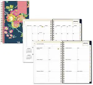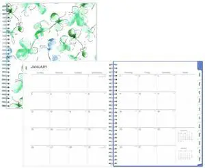 Lindley Monthly Planner Floral Artwork 10 x 8 White/Blue/Green Cover 12-Month Jan to Dec: 2026 BLS101582